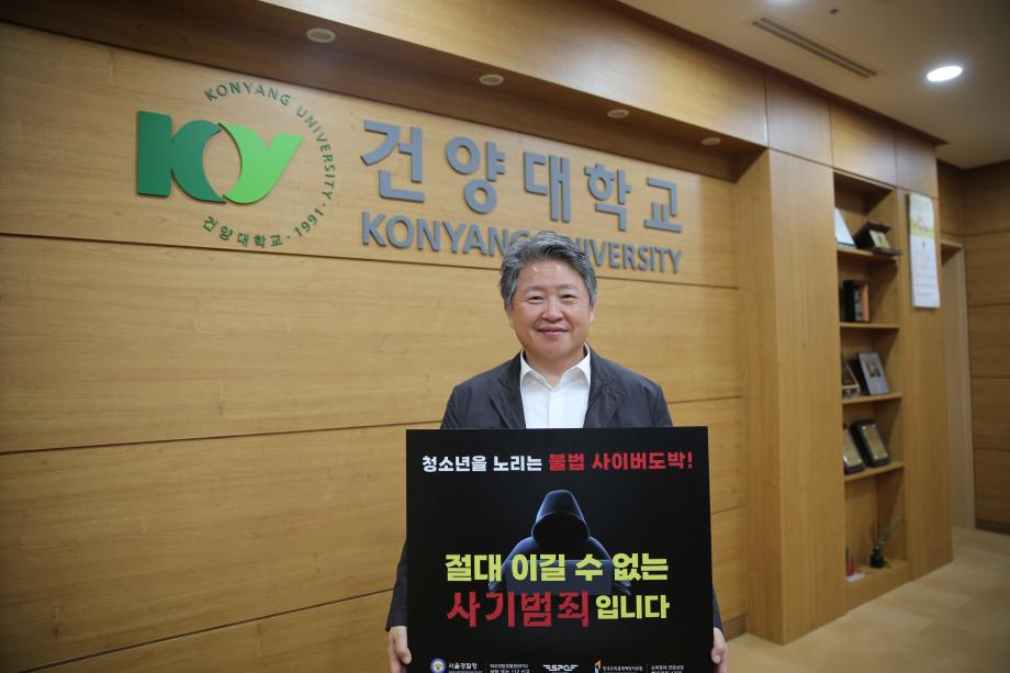 김용하 건양대 총장, 청소년 도박 근절 릴레이 챌린지 동참 건양대학교 김용하 총장이 청소년 사이버 도박 근절을 위한 릴레이 챌린지에 동참했다. 이 챌린지는 청소년 대상 불법 사이버 도박의 위험성을 국민에게 알리고 불법 도박의 확산을 차단하기 위해 3월부터 서울경찰청에서 추진하고 있는 캠페인이다. 김용하 총장은 “최근 청소년을 대상으로 한 사이버 도박이 확산되면서 땀 흘리는 성실함과 올곧은 정직을 배워야 할 우리 청소년들이 빠져나오기 힘든 늪에 빠지는 사례가 증가하고 있다”며 “우리 학생들이 애초에 불법적인 사이버 도박에 빠지지 않도록 우리 기성세대가 먼저 앞장 서 모범을 보여 나가야 할 것”이라고 밝혔다. 오덕성 우송대 총장으로부터 릴레이 챌린지 지명을 받은 김 총장은 다음 챌린지 주자로 백성현 논산시장, 이응우 계룡시장을 지명했다.