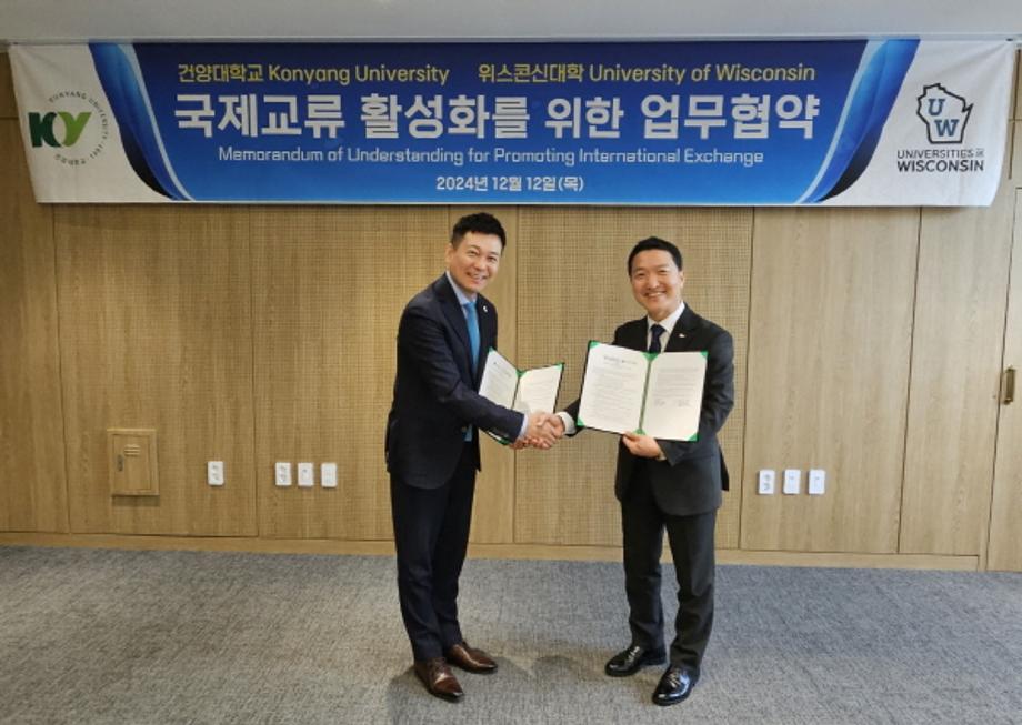 건양대학교(총장 김용하)와 위스콘신대학교가 12일 건양대 논산 창의융합캠퍼스 명곡정보관에서 글로벌 협력과 국제교류 활성화를 위한 업무협약을 체결했다.