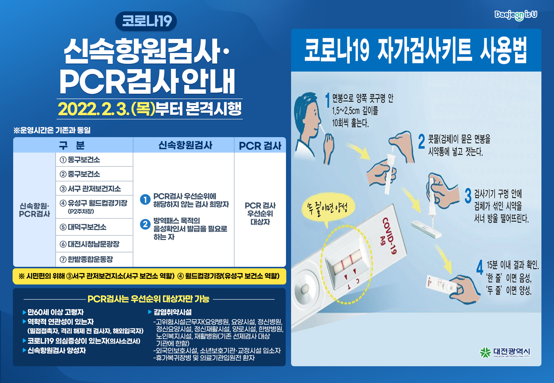 | 제목 | [대전] 코로나19 관련 신속항원검사 및 PCR 검사 안내 | ||||