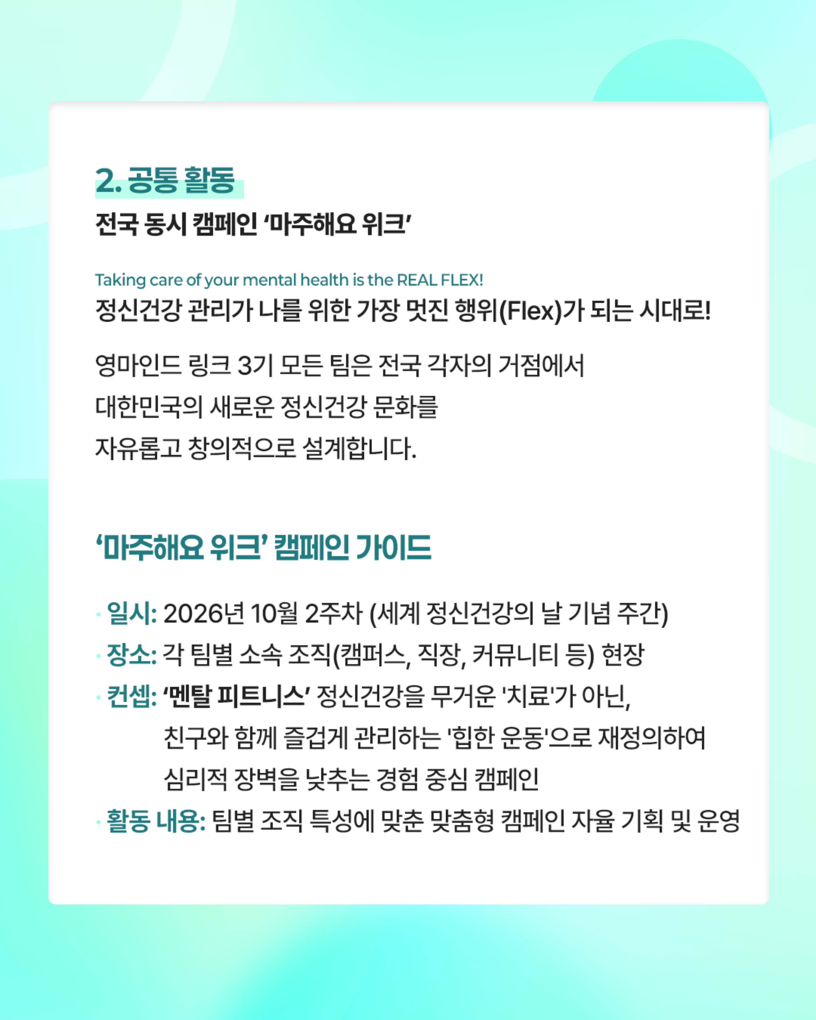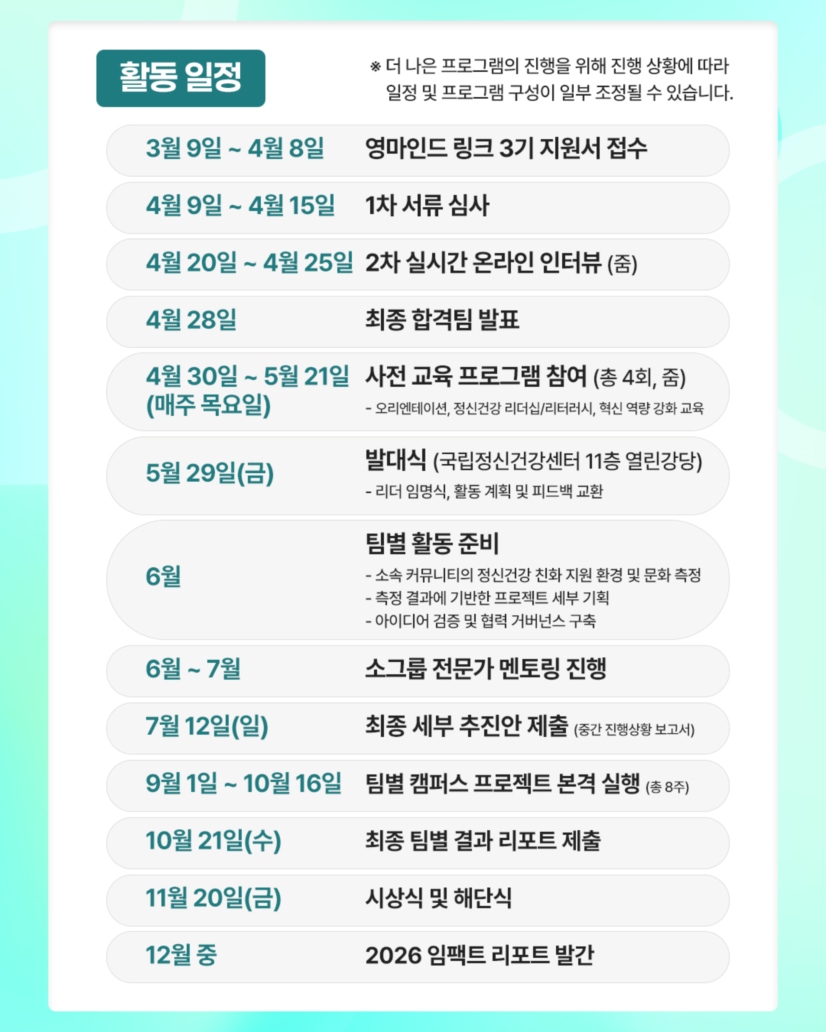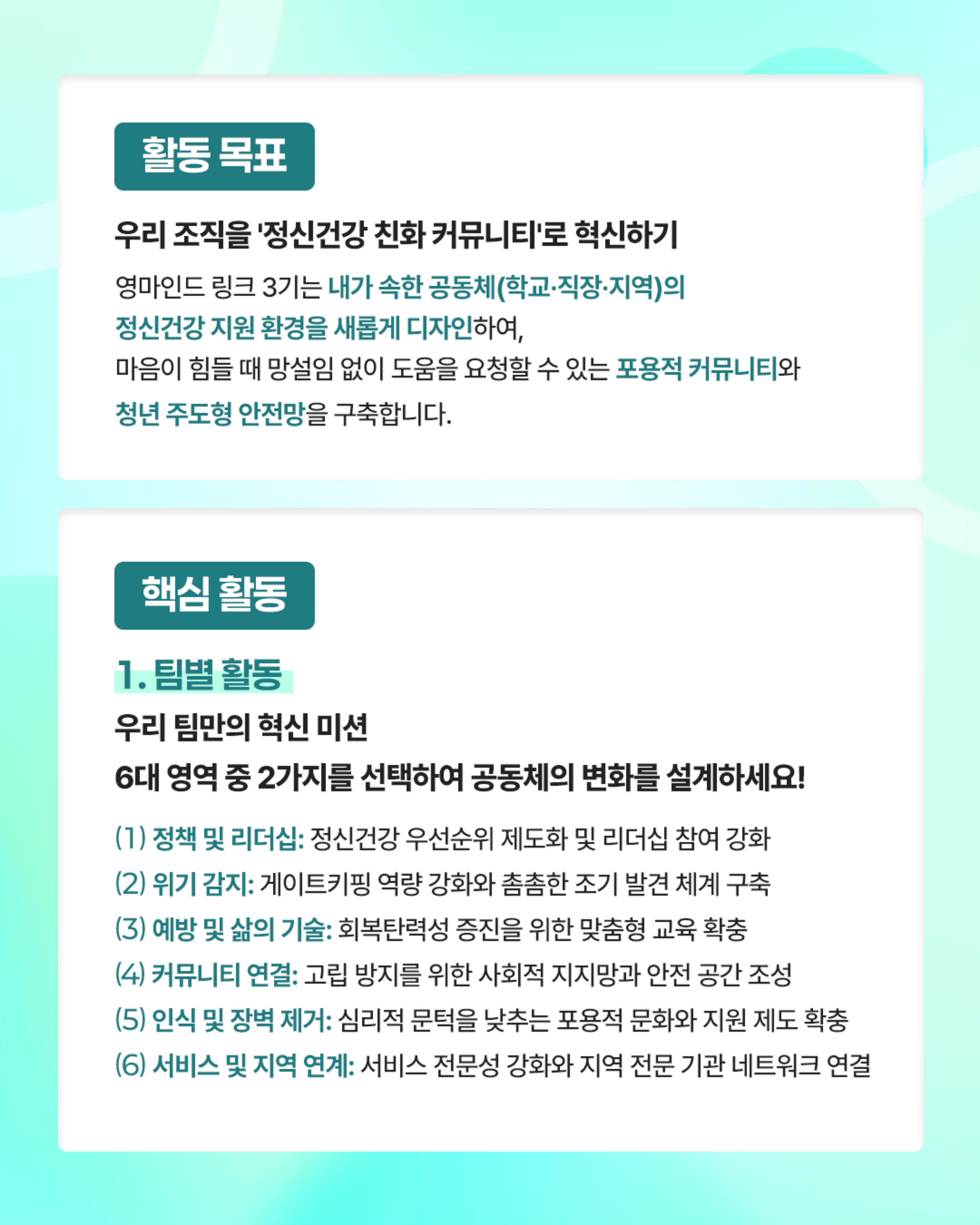 | 제목 | 2026 정신건강 서포터즈 영마인드 링크(Link) 3기 모집안내 | ||||