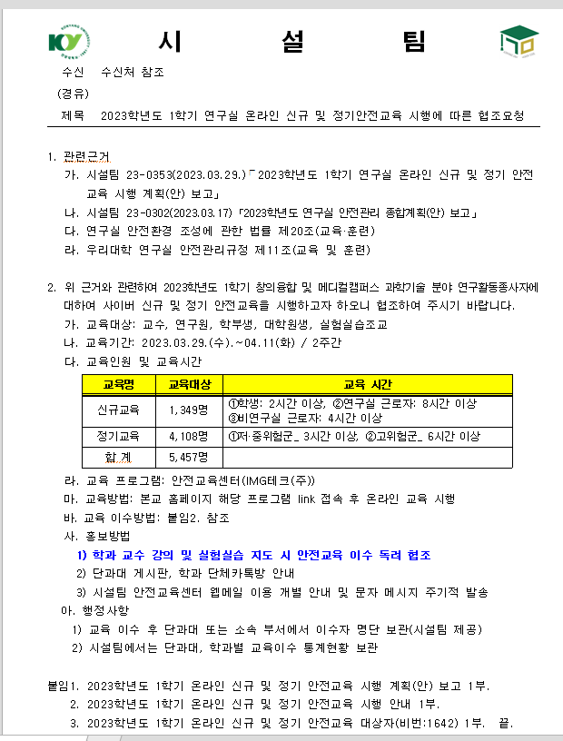 2023학년도+1학기+연구실+온라인+신규+및+정기+안전교육+시행+계획(안)보고(관련근거)[3].zip