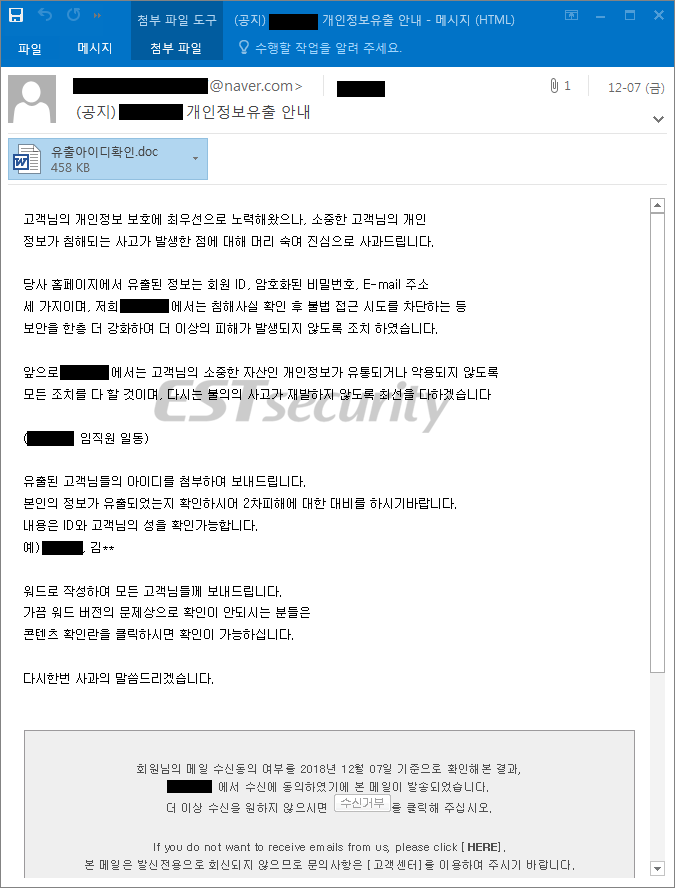 | 제목 | 국내 사용자를 대상으로하는 악성 이메일 공격 패턴 안내 | ||||