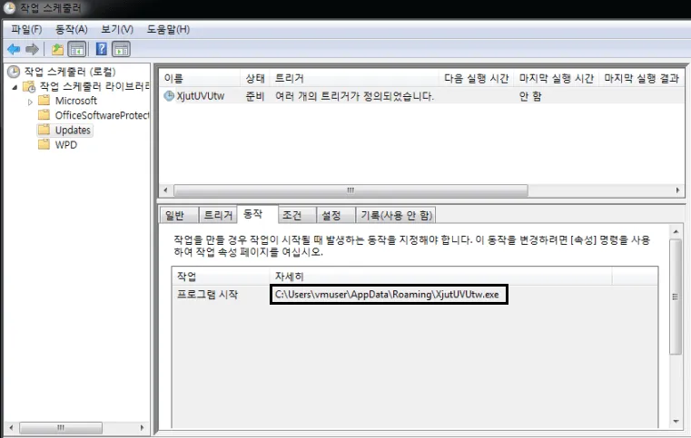 [그림2] 작업스케줄러에 등록된 자가복제파일 실행 스케줄 (안랩 제공)
