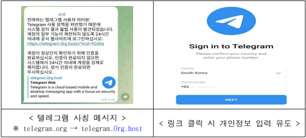 최근 각급기관 재직자를 대상으로 텔레그램 메신저를 통한 피싱 시도 및 피해가 발생하고 있습니다.