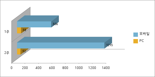 1. 디바이스 별 접속 건수 2. 브라우저 별 접속 건수 3. 기간 별 접속 건수 아직 2주밖에 지나지 않은 시점이지만 지속적으로 꾸준히 사용률이 증가하고 있다.
