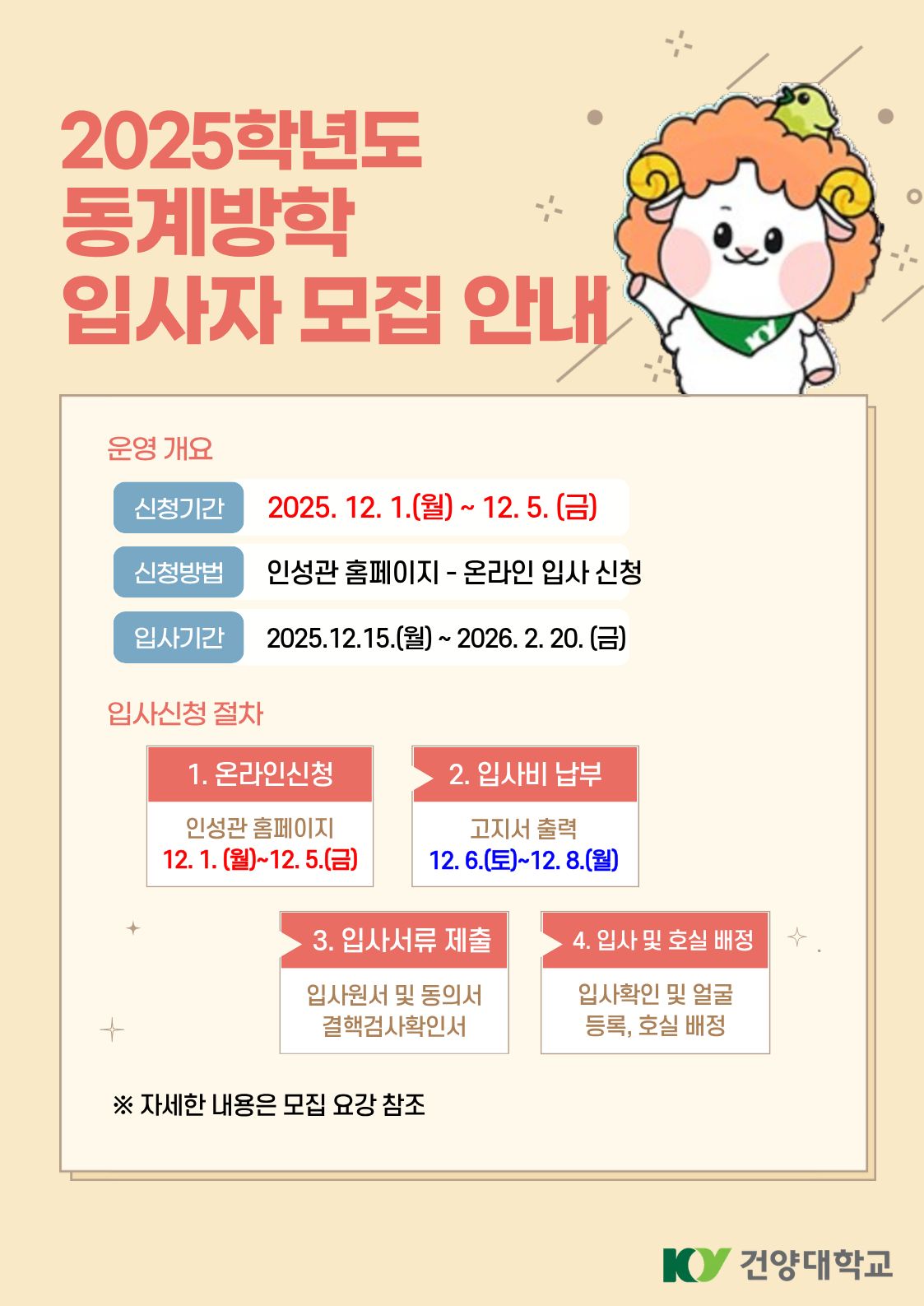 『 2025학년도 동계방학 입사자 모집 안내 』글의 상세내용을 확인하는 표로 제목, 부서명, 등록일, 조회, 첨부, 내용으로 나뉘어 설명합니다.