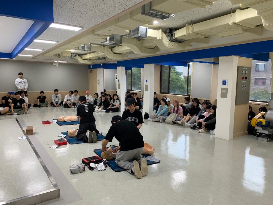3주차에는 융합디자인학과 학생들도 함께 참여하여 교육 및 실습을 진행하였습니다~ 마지막 주차인 만큼 가슴압박, 인공호흡, 자동심장 충격기(AED)를 모두 실습했습니다. 3주동안 잘 따라준 23학번께 감사드리며 교육을 진행해준 19학번 신수인, 표상운, 권순찬 20학번 배현준 학생에게 무한한 박수를 드립니다~ |