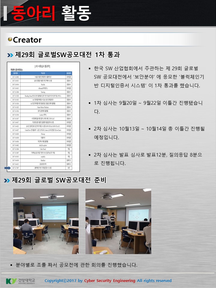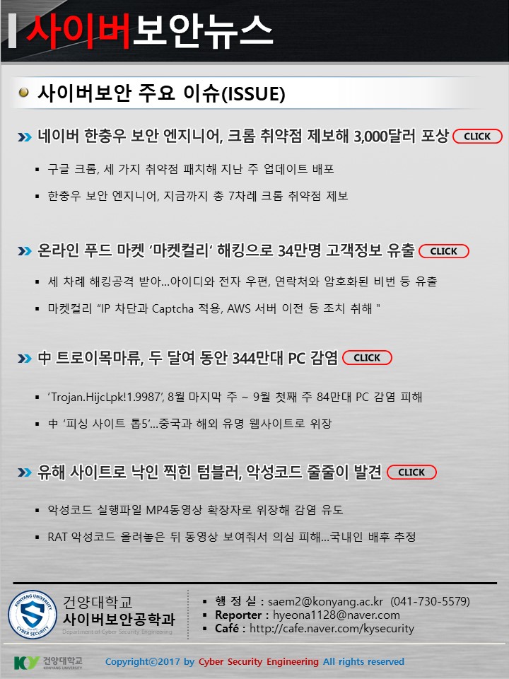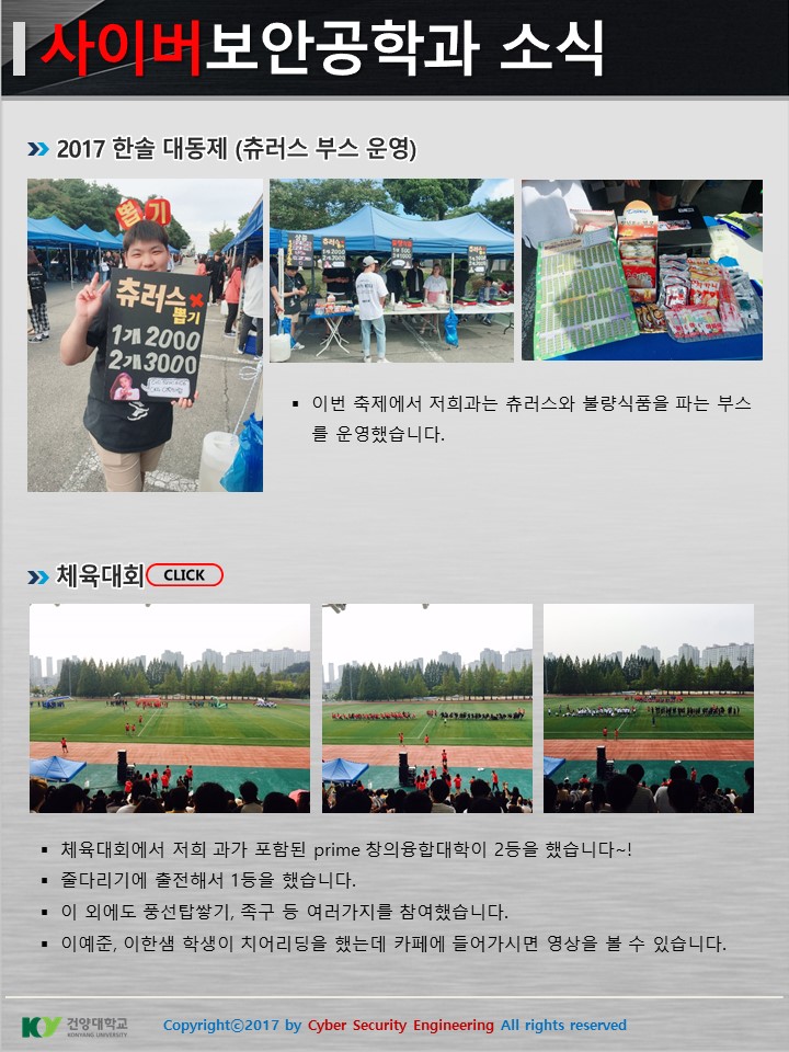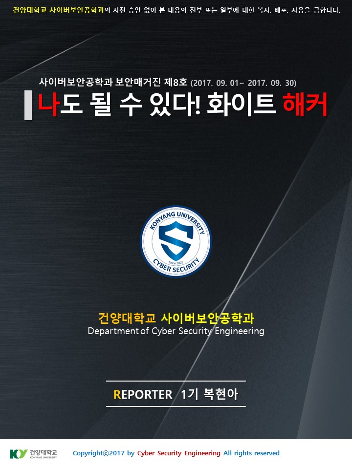 『 사이버보안공학과 보안매거진 2017-8호 』글의 상세내용을 확인하는 표로 제목, 부서명, 등록일, 조회, 첨부, 내용으로 나뉘어 설명합니다.
