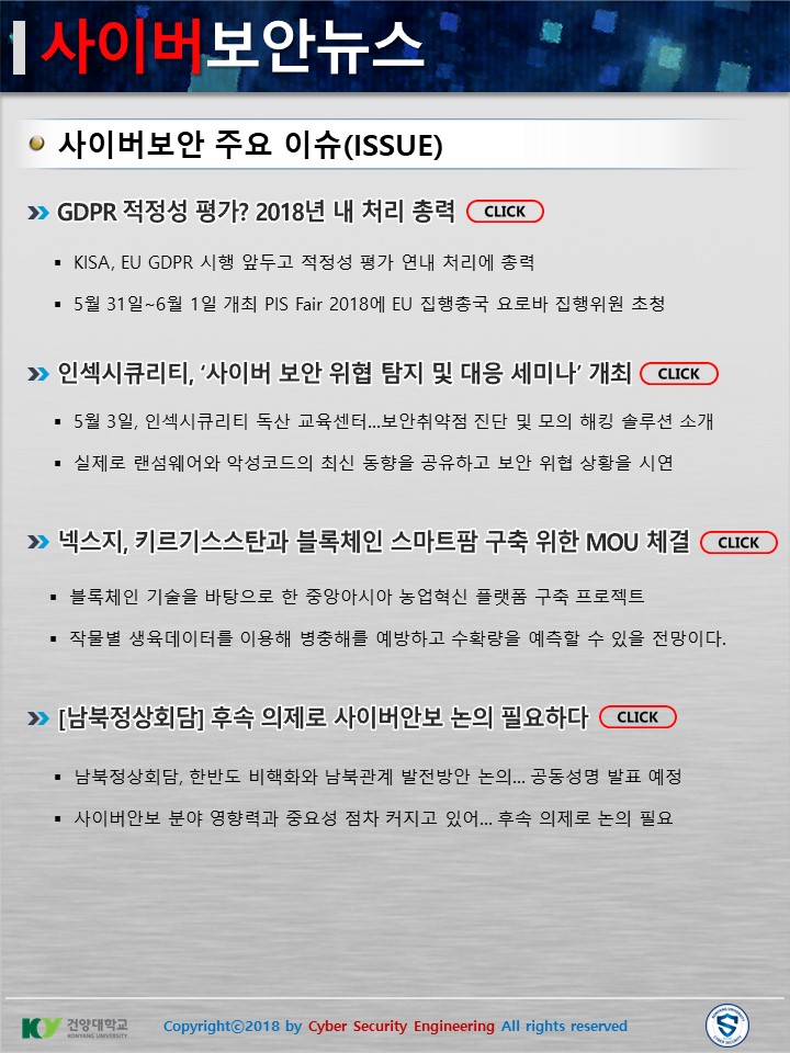 『 사이버보안공학과 보안매거진 2018-2호 』글의 상세내용을 확인하는 표로 제목, 부서명, 등록일, 조회, 첨부, 내용으로 나뉘어 설명합니다.