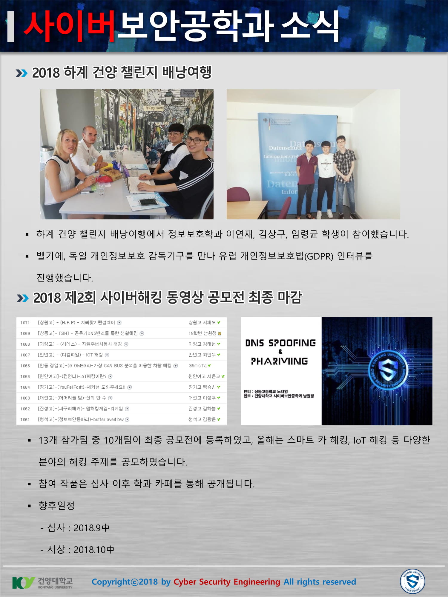 『 사이버보안공학과 보안매거진 2018-5호 』글의 상세내용을 확인하는 표로 제목, 부서명, 등록일, 조회, 첨부, 내용으로 나뉘어 설명합니다.