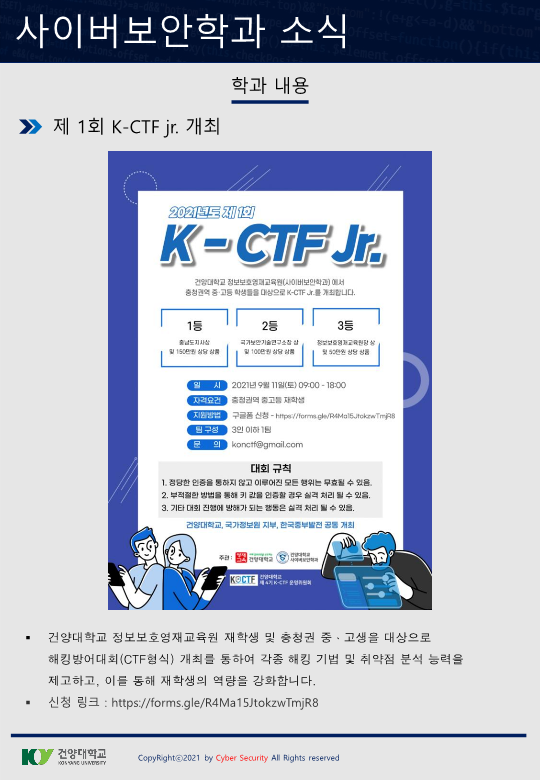 『 사이버보안공학과 보안매거진 2021-4호 』글의 상세내용을 확인하는 표로 제목, 부서명, 등록일, 조회, 첨부, 내용으로 나뉘어 설명합니다.