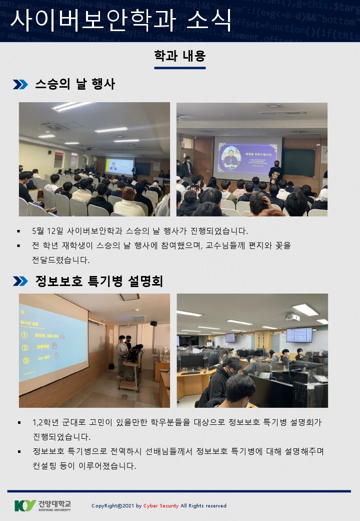 『 사이버보안학과 보안매거진 2022-2호 』글의 상세내용을 확인하는 표로 제목, 부서명, 등록일, 조회, 첨부, 내용으로 나뉘어 설명합니다.