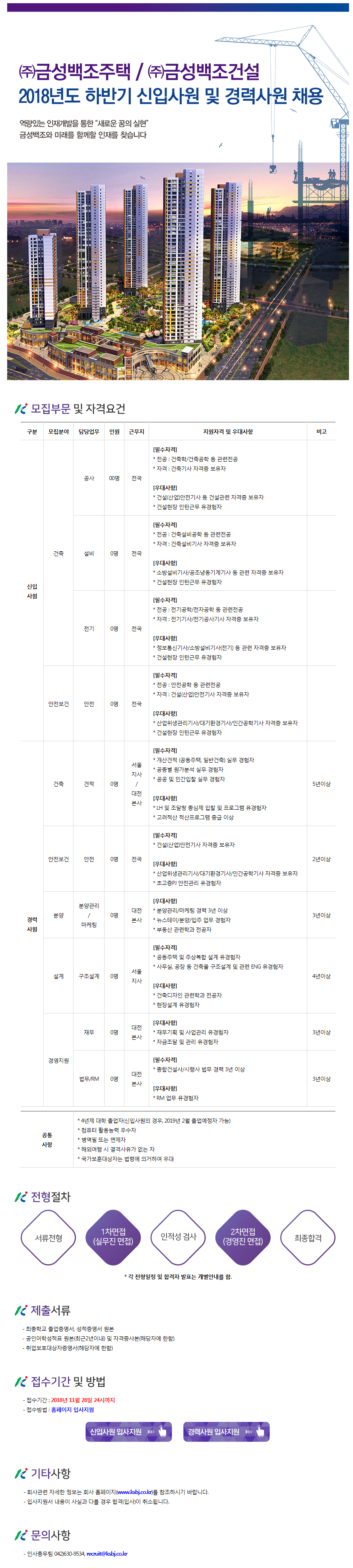 제목 (~11/28)(주)금성백조주택/(주)금성백조건설 2018년도 하반기 신입사원 및 경력사원 채용 안내