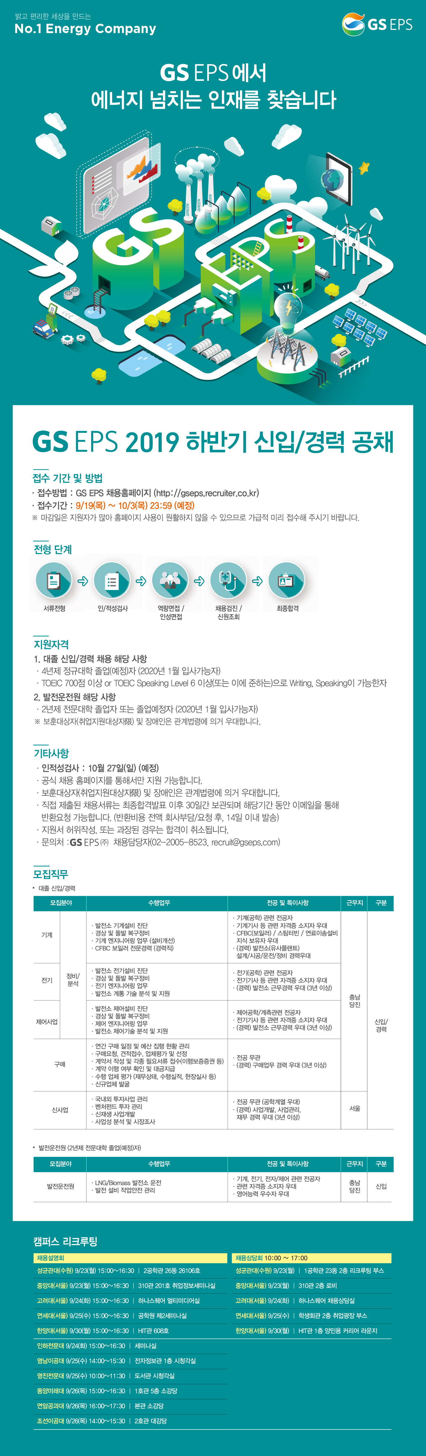 제목 (~10/3) [GS EPS] 2019 하반기 신입사원 채용 안내