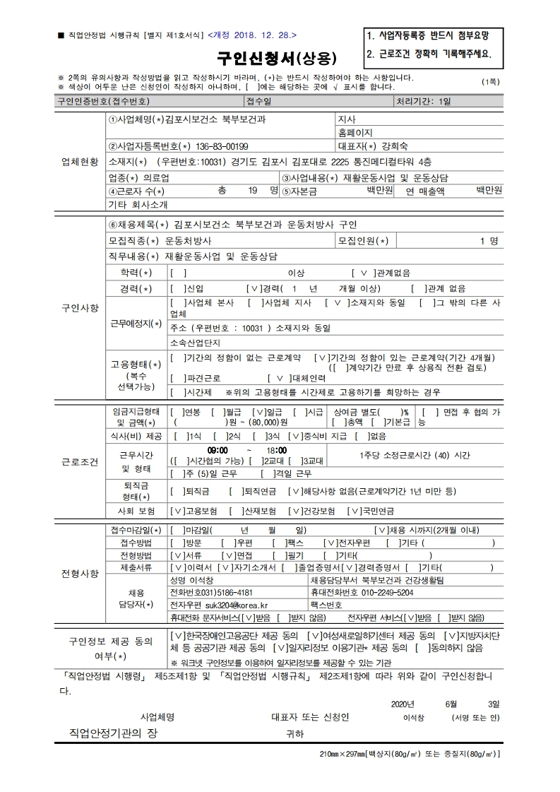 [[김포시보건소]운동처방사 신입 계약직 채용]