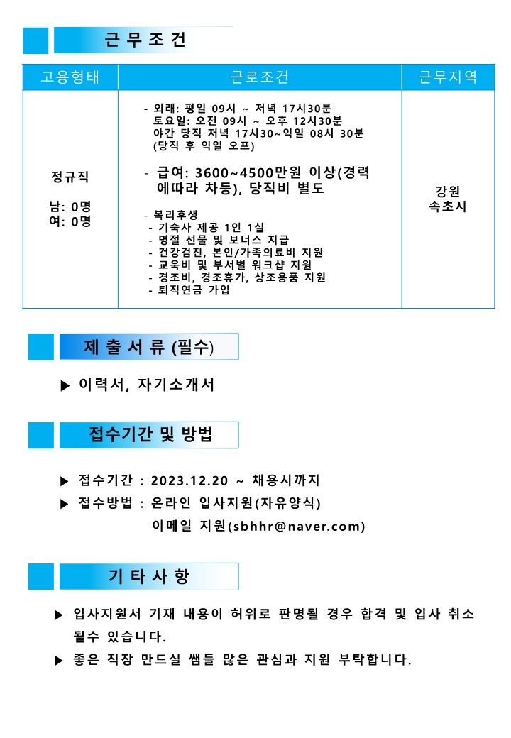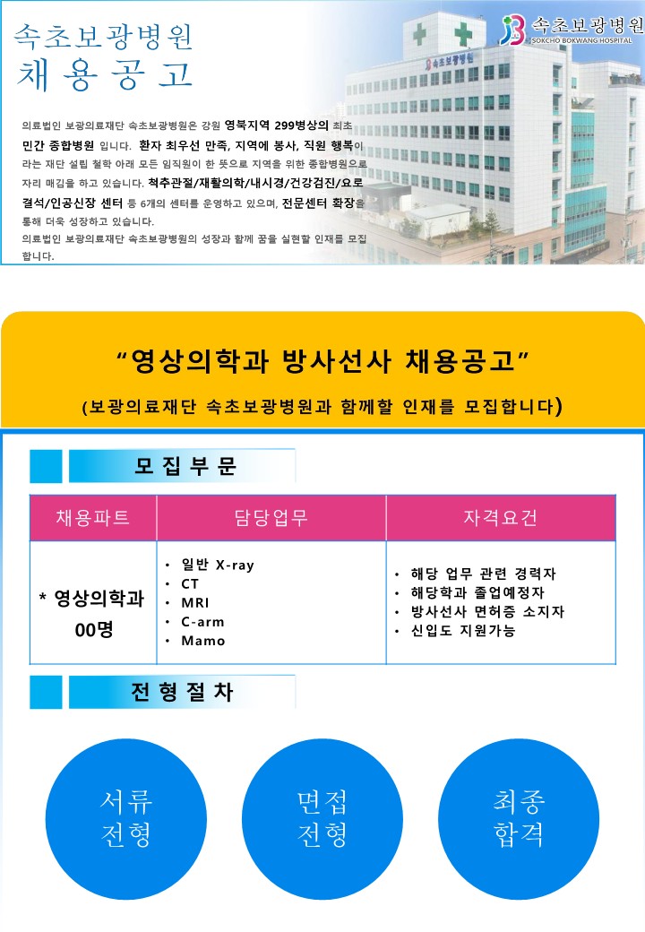 [속초보광병원] 영상의학과 방사선사 채용 (~채용시까지) 글의 상세내용