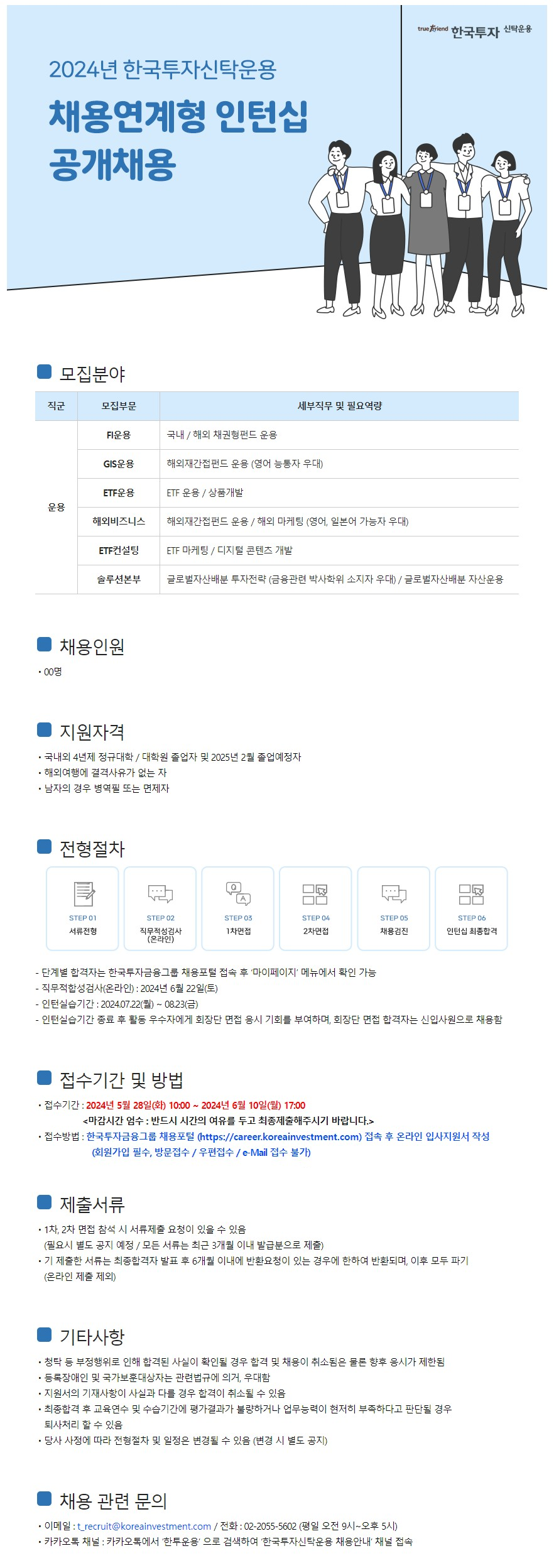 [한국투자신탁운용] 2024년 채용연계형 인턴십 공개채용(~6/10) 글의 상세내용
