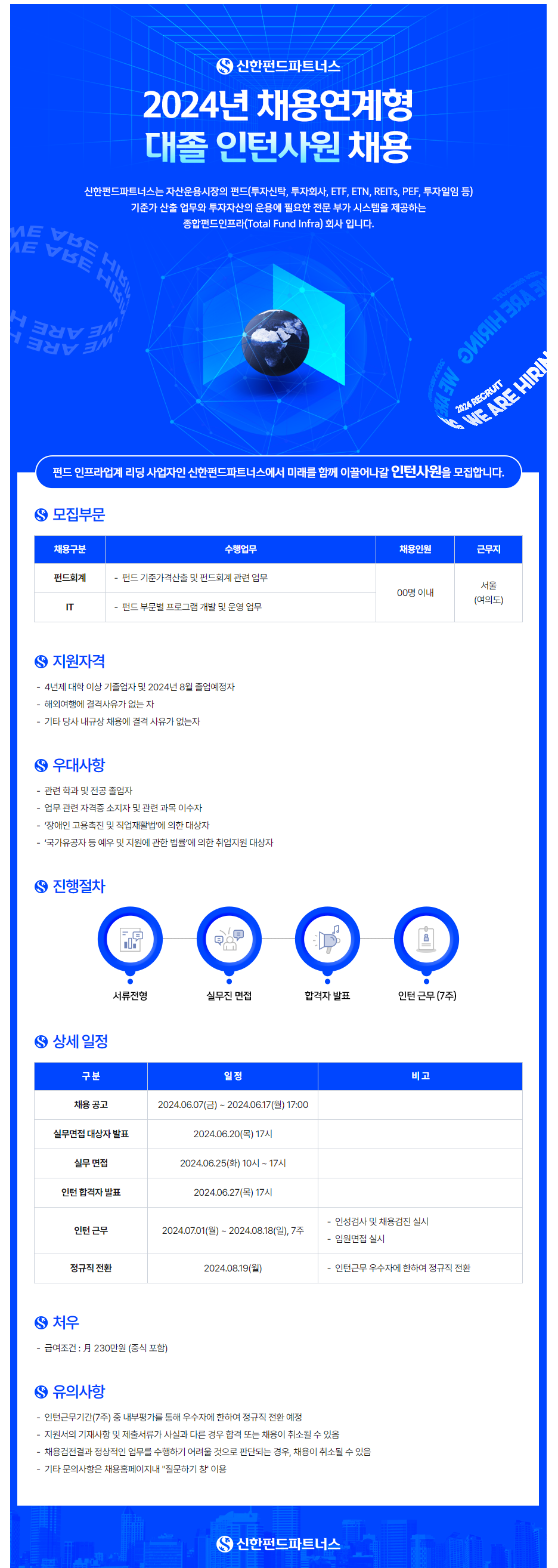 [신한펀드파트너스] 채용연계형 대졸 인턴사원 채용 (~6/17) 글의 상세내용