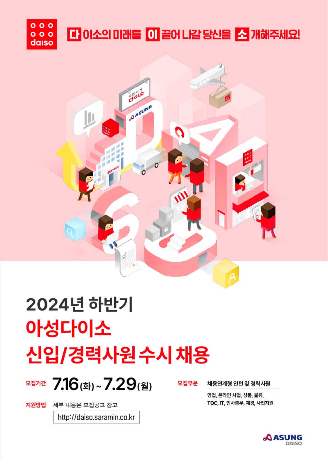 [아성다이소] 하반기 신입/경력사원 수시 채용(~7/29) 글의 상세내용