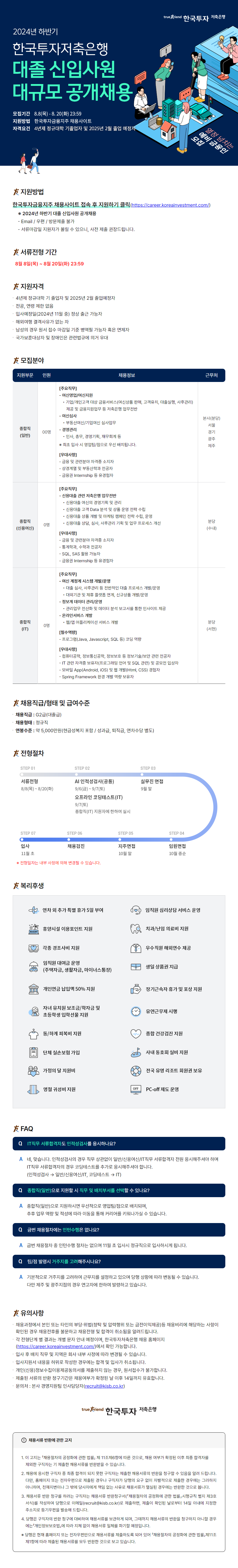 [한국투자저축은행] 2024년 하반기 대졸 신입사원 공개채용(~8/20) 글의 상세내용