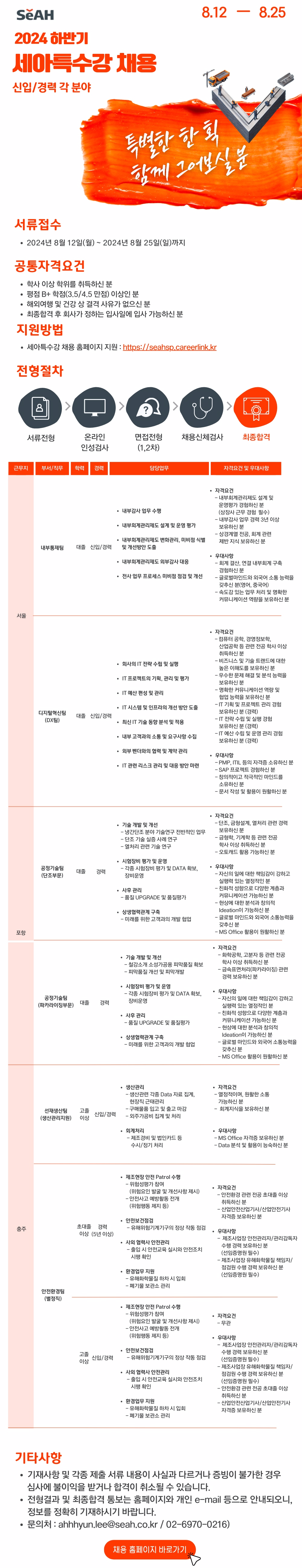 - 접수방법 : 세아특수강 채용사이트(https://seahsp.careerlink.kr)