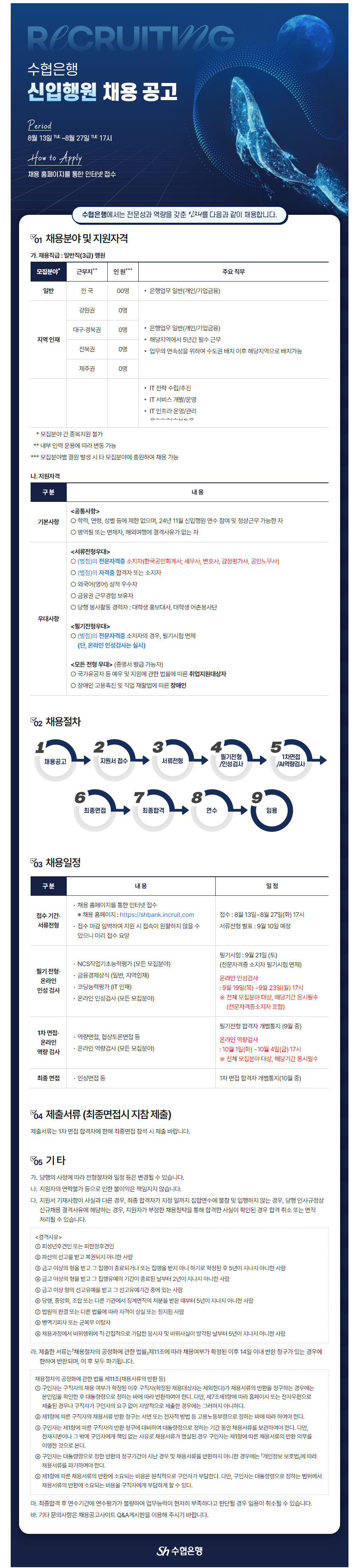 [수협은행] 2024년 하반기 신입행원 채용(~8/27) 글의 상세내용