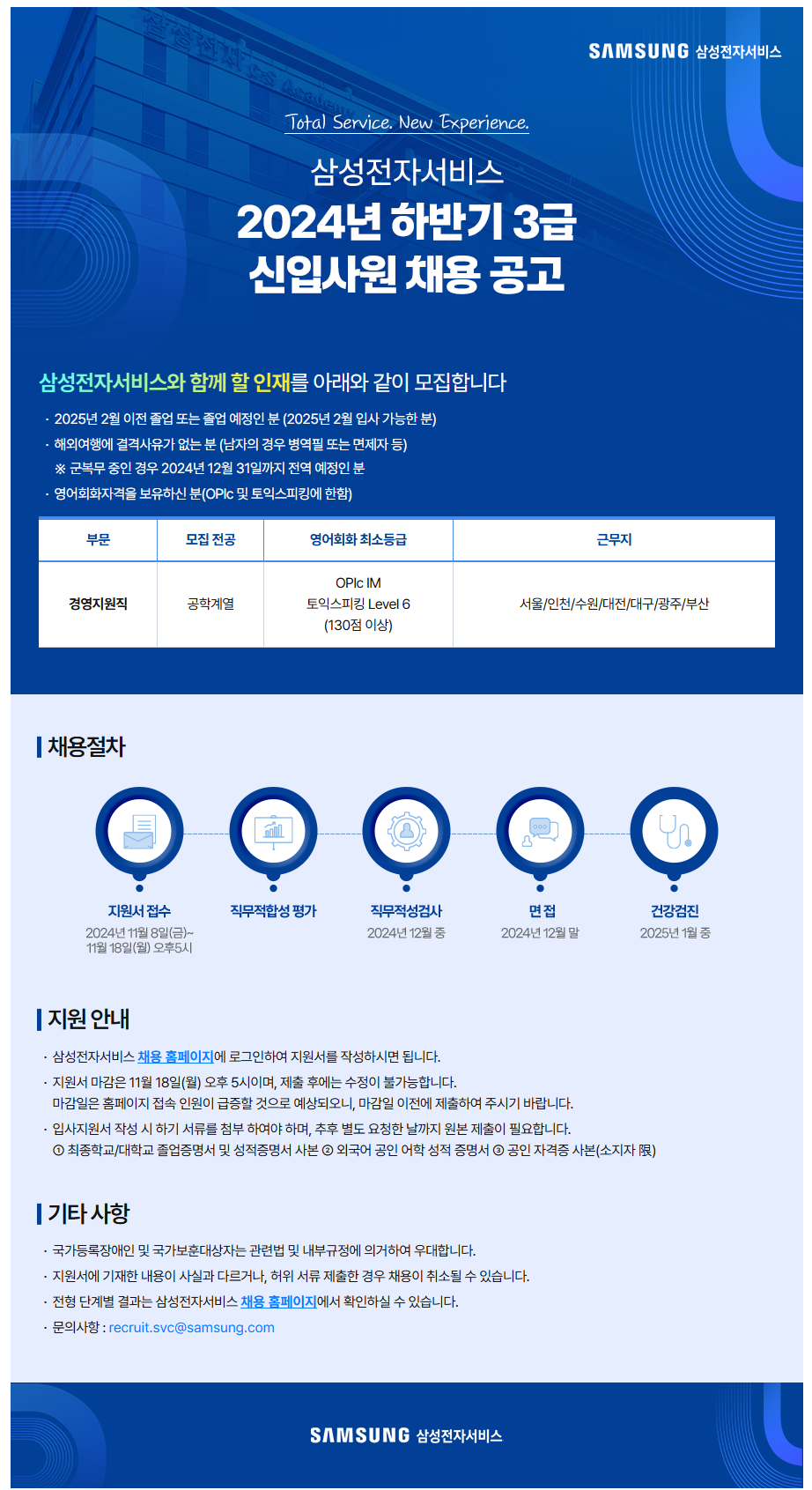 [삼성전자서비스(주)]신입사원 채용(~11/18) 글의 상세내용