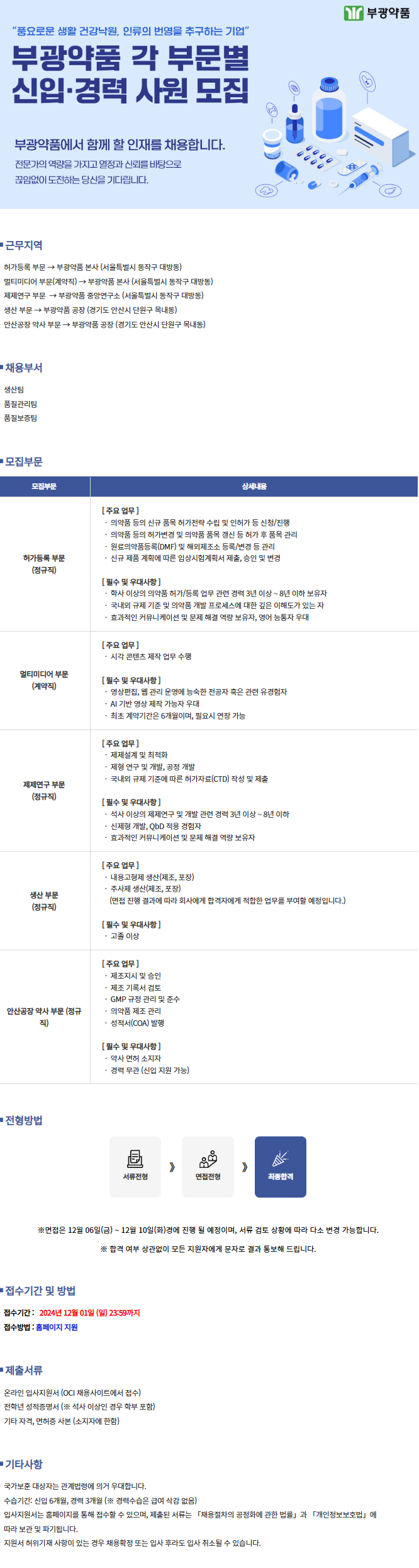 [부광약품]각 부문별 신입 및 경력사원 모집(~12/1) 글의 상세내용