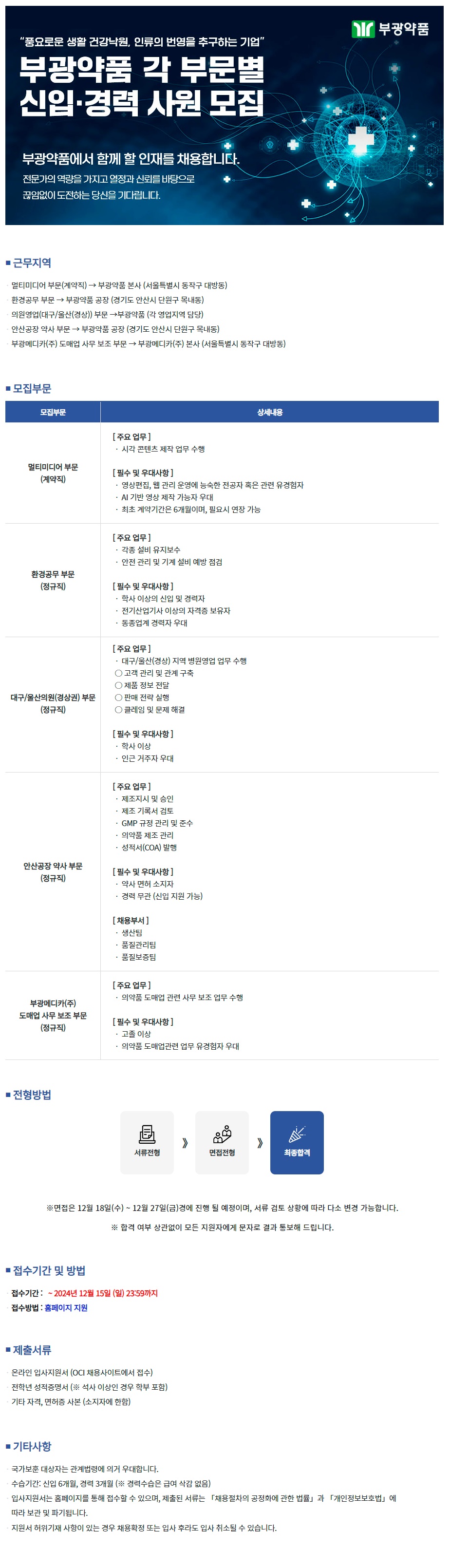 제목 [부광약품]각 부문별 신입 및 경력사원 모집(~12/15)