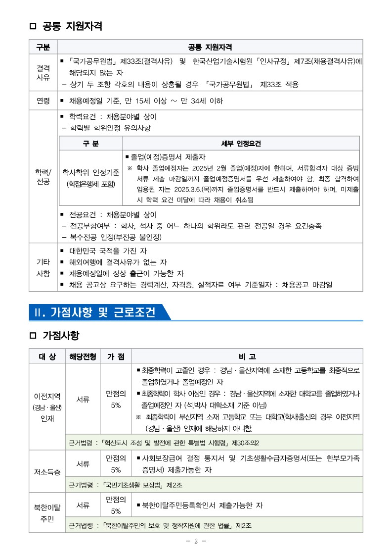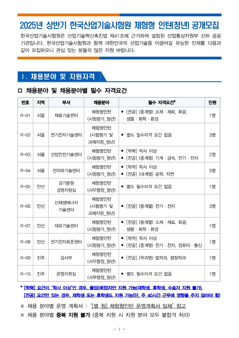 [한국산업기술시험원]2025년 상반기 체험형 인턴(청년)공개모집(~25/1/3) 글의 상세내용