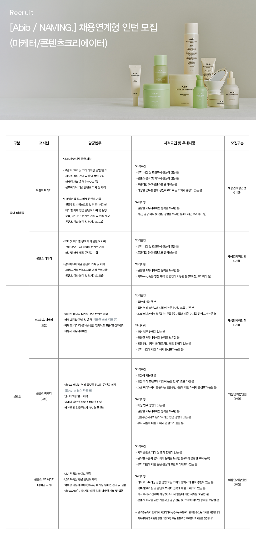 주요 업무 각 포지션별 담당업무를 채용 공고 포스터에 기재해 두었습니다. 아래 첨부한 이미지 파일을 통해 확인 가능하니 참고 부탁드립니다.