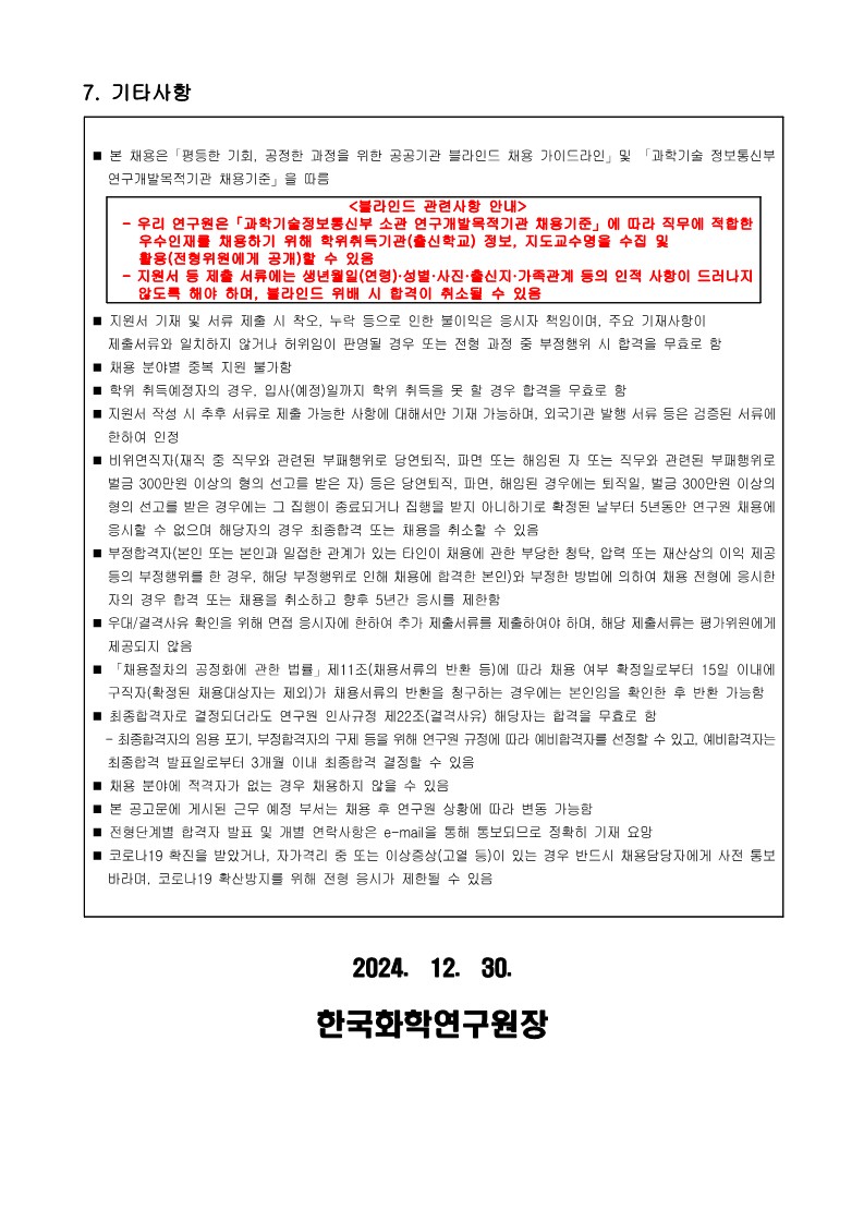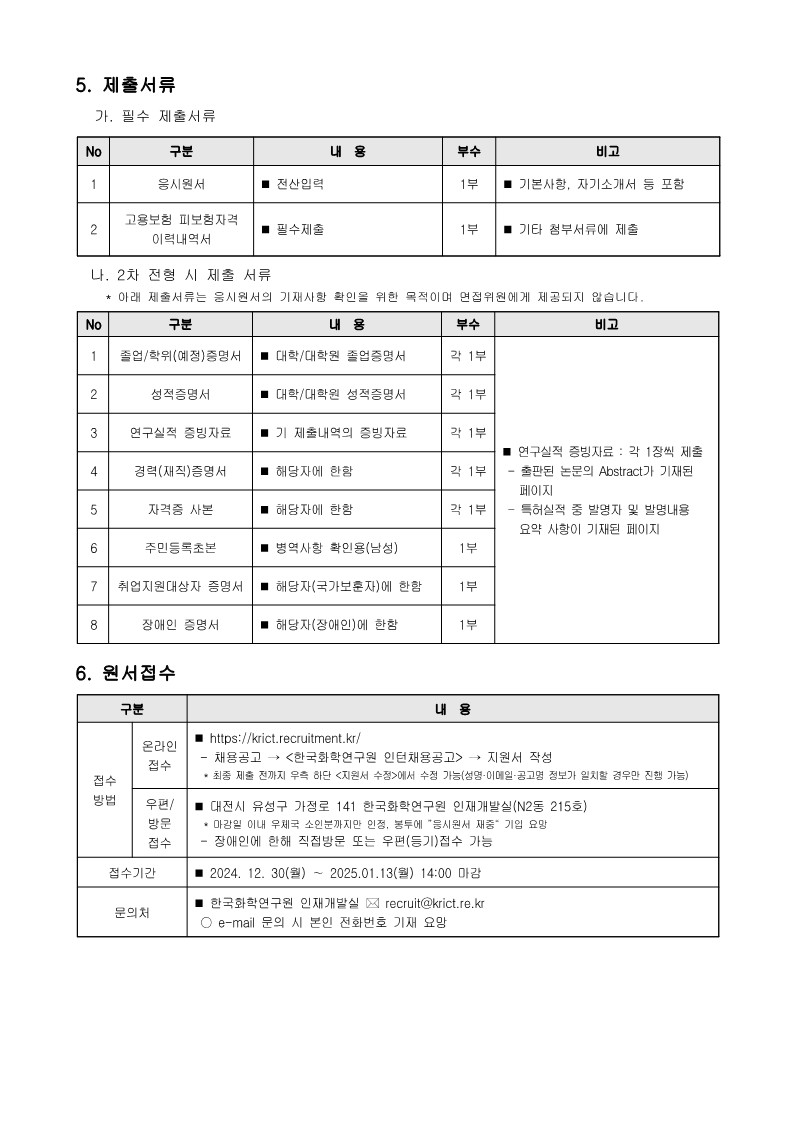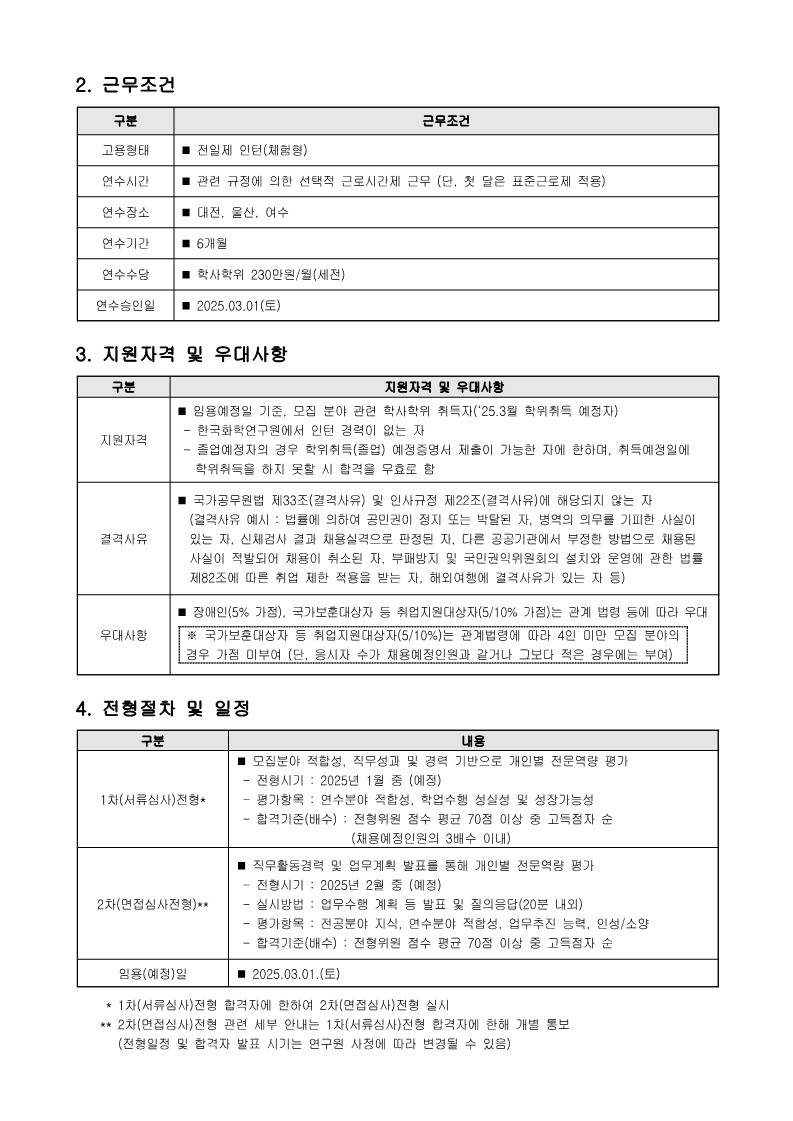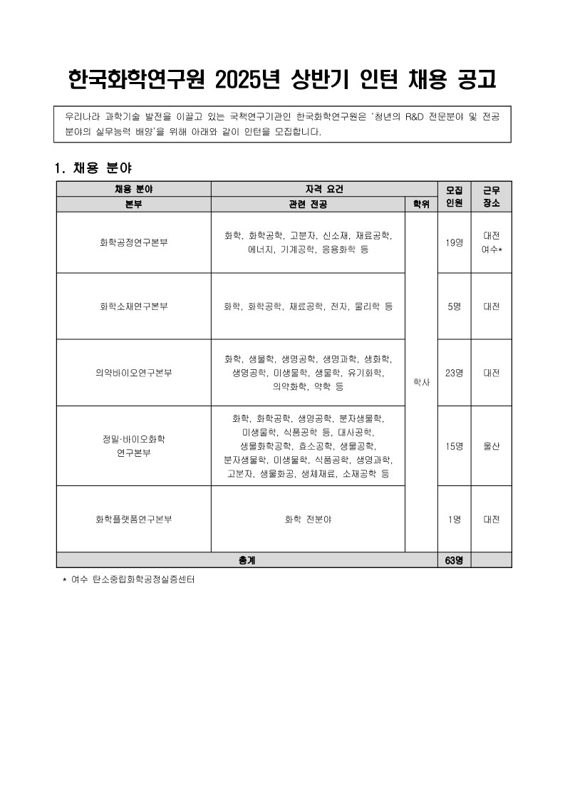 [한국화학연구원]2025년 상반기 인턴 채용(~1/13) 글의 상세내용