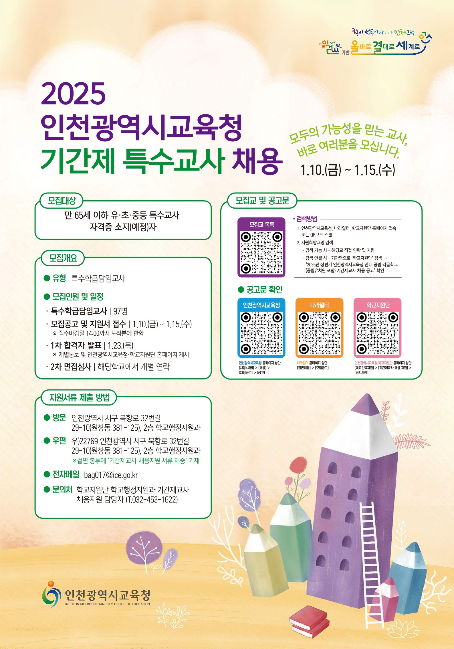 | 제목 | [ 인천광역시교육청]2025학년도기간제특수교사 채용(1/10~1/15) | ||||