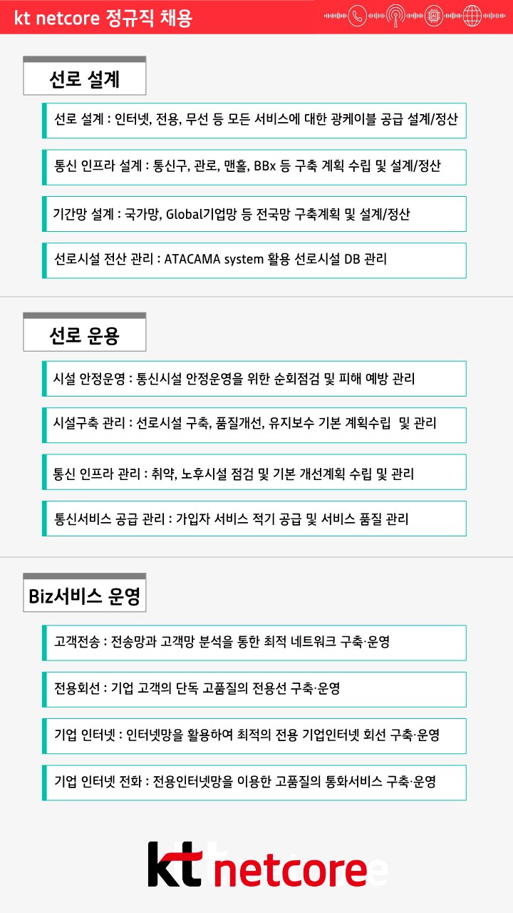 정보통신/전자/토목 관련 자격증 취득자 우대 ㅇ지원방법 : 네이버에 “kt그룹채용” 검색 - kt그룹채용사이트(kt recruit) (https://recruit.kt.com) |