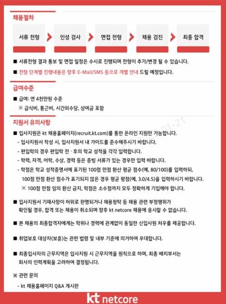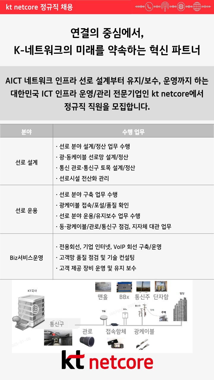 | 제목 | [kt netcore]2025년 신입사원 모집(~1/31) | ||||