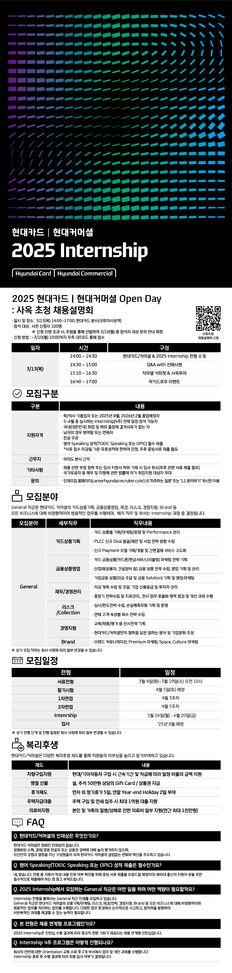 | 제목 | [현대카드|현대커머셜]2025년 상반기 Internship 모집(~3/19) | ||||