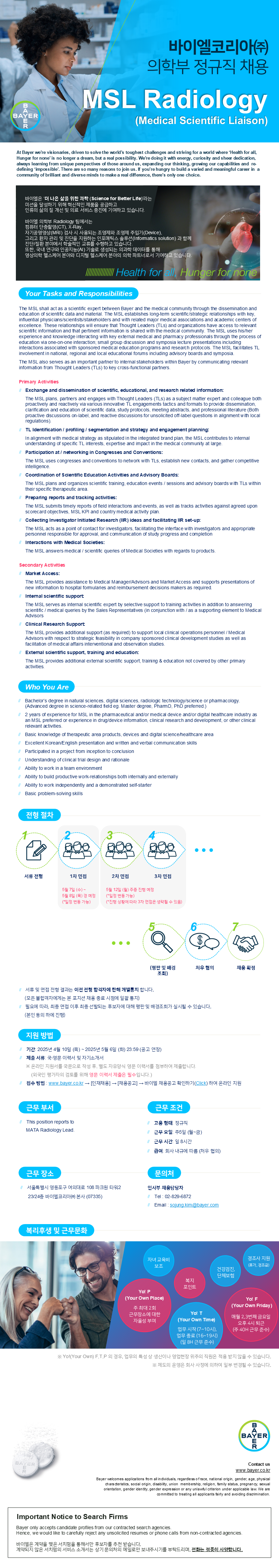 [바이엘코리아]의학부 MSL, MIA 채용(마감일 상세확인) 글의 상세내용