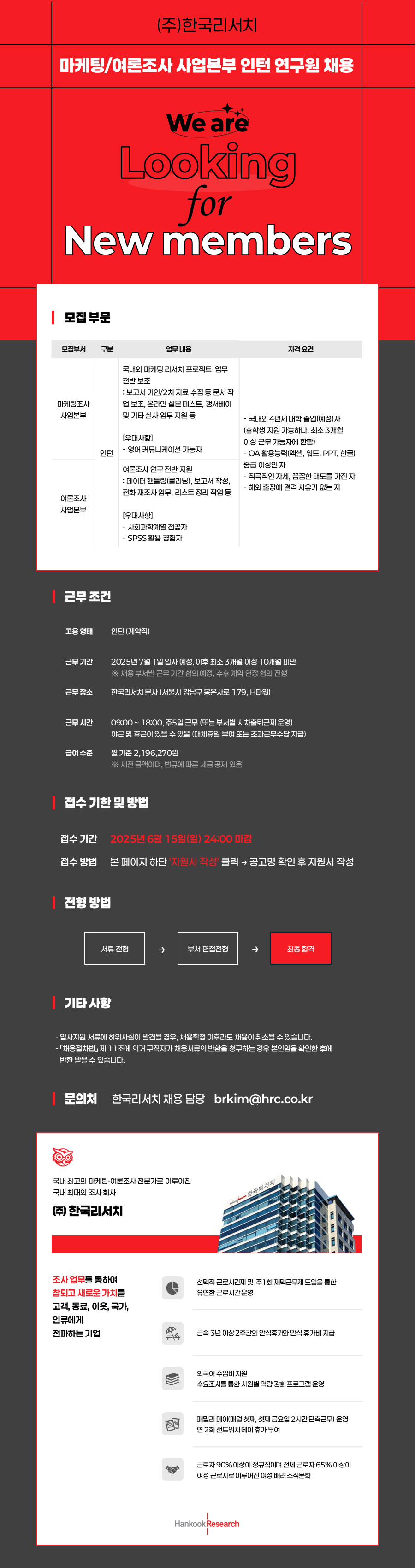 문의처 한국리서치 채용 담당 brkim@hrc.co.kr