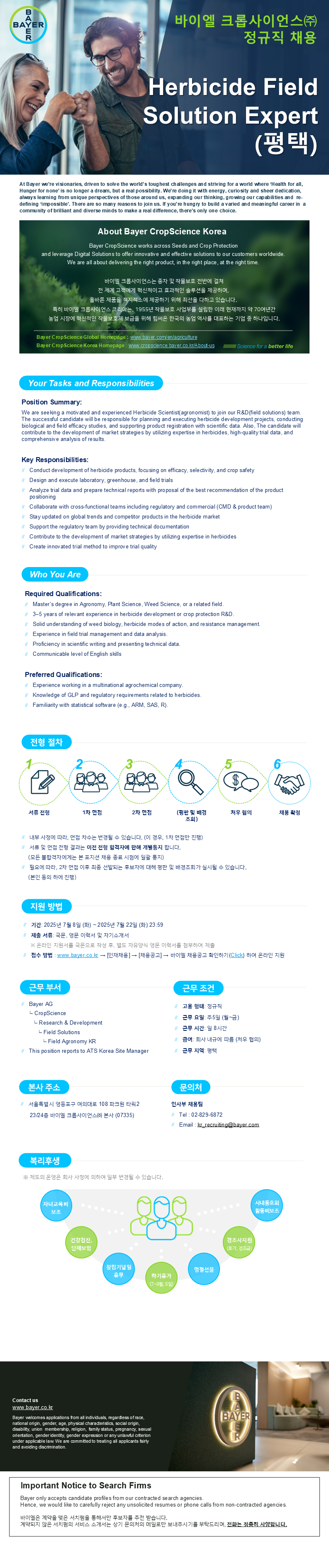 | 제목 | [바이엘 크롭사이언스]Herbicide Field Solution Expert (정규직, 평택) 채용(~7/22) | ||||