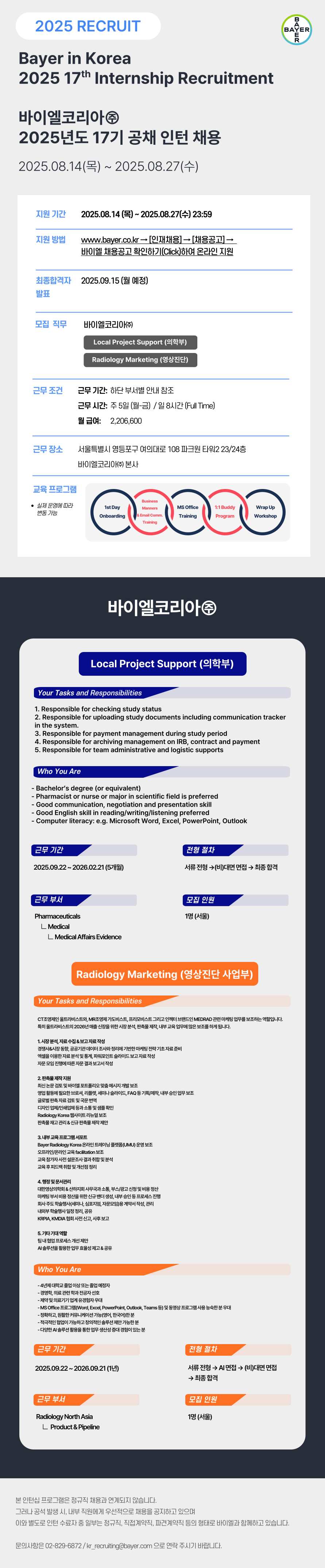 • 근무지: 바이엘코리아 본사 (서울시 영등포구 여의대로 108, 타워2 23/24)