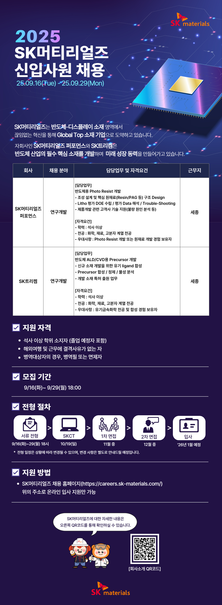 접수 방법 채용사이트 접수 : https://careers.sk-materials.com/