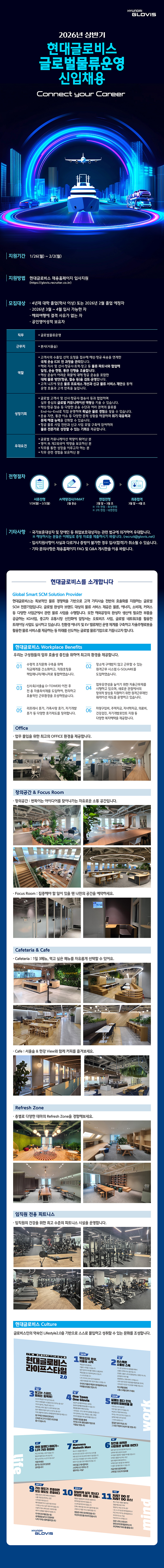 현대글로비스에서 2026년 상반기 신입사원 채용을 모집하고 있습니다. 글로벌물류운영 직무를 통해