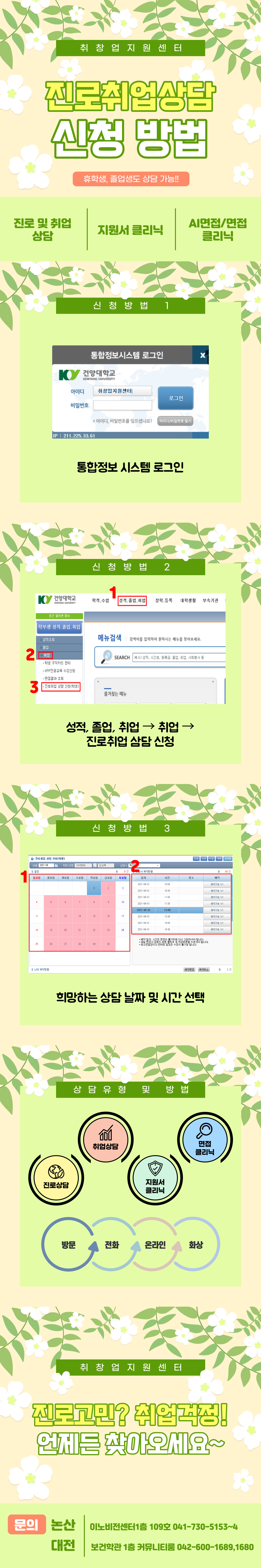 1:1 맞춤형 진로취업 상담 신청 방법 안내(대면/비대면) 글의 상세내용