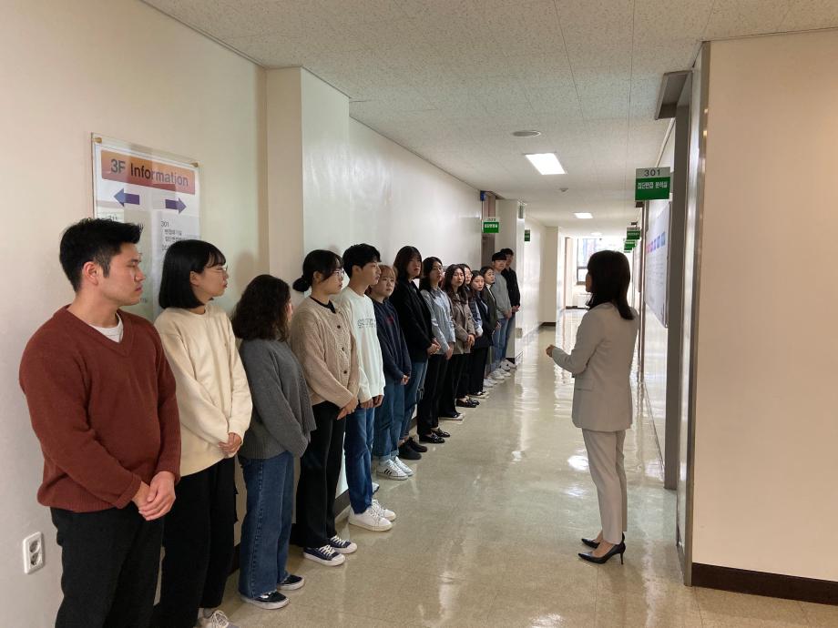 10월 5째주 면접대처능력 강화프로그램(국방공무원전공) - 운영일시 : 10.31(목) 13:30 ~ 14:30 - 장소 : 산학취업본부 309호 - 참여학과/인원 : 국방공무원전공 15명 - 내용 : 집단면접교육