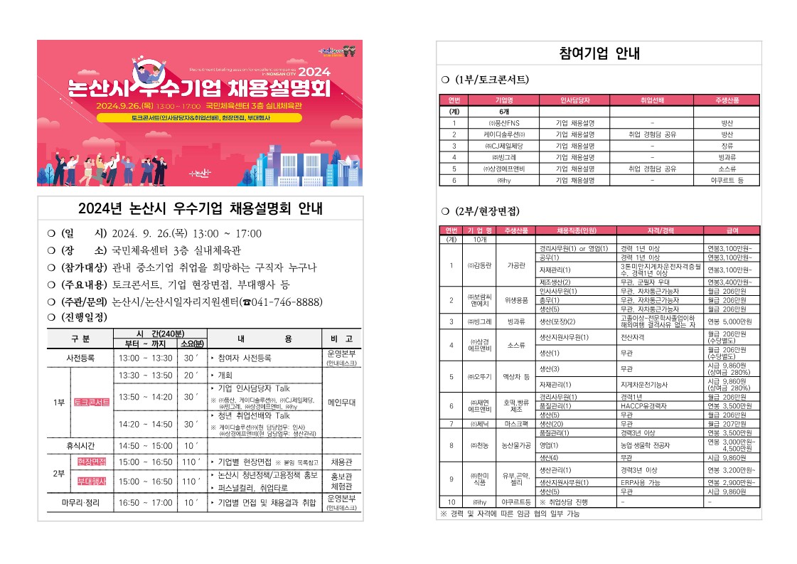 | 제목 | ★2024년 논산시 우수기업 채용설명회(9/26) | ||||