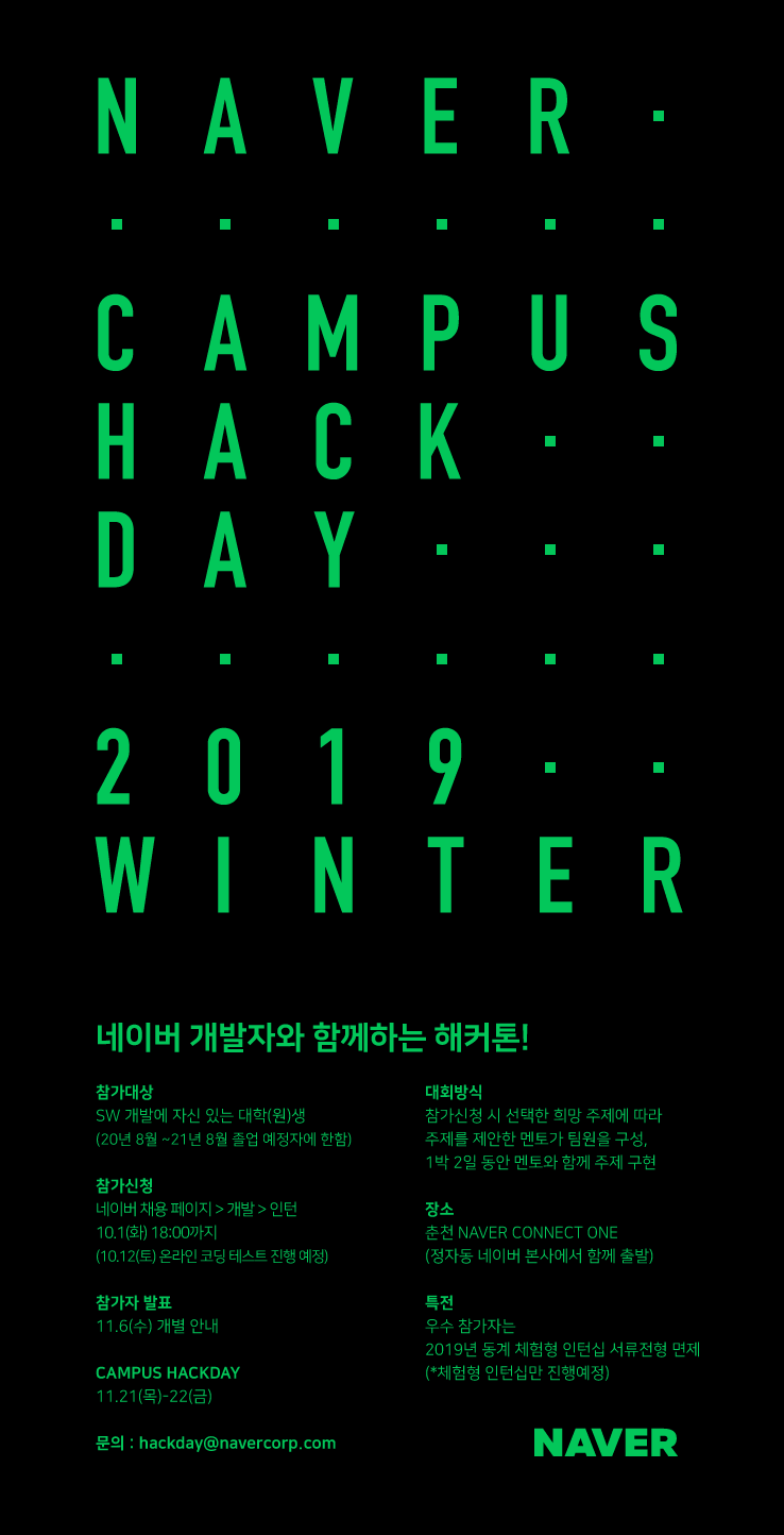 제목 네이버 CAMPUS HACKDAY WINTER 2019 (네이버 개발자와 함께하는 해커톤) 안내