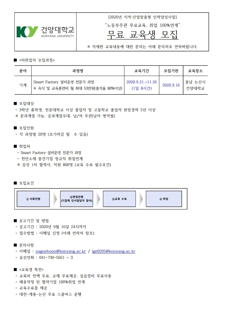 제목 Smart Factory 설비운영 전문가 과정 교육생 모집