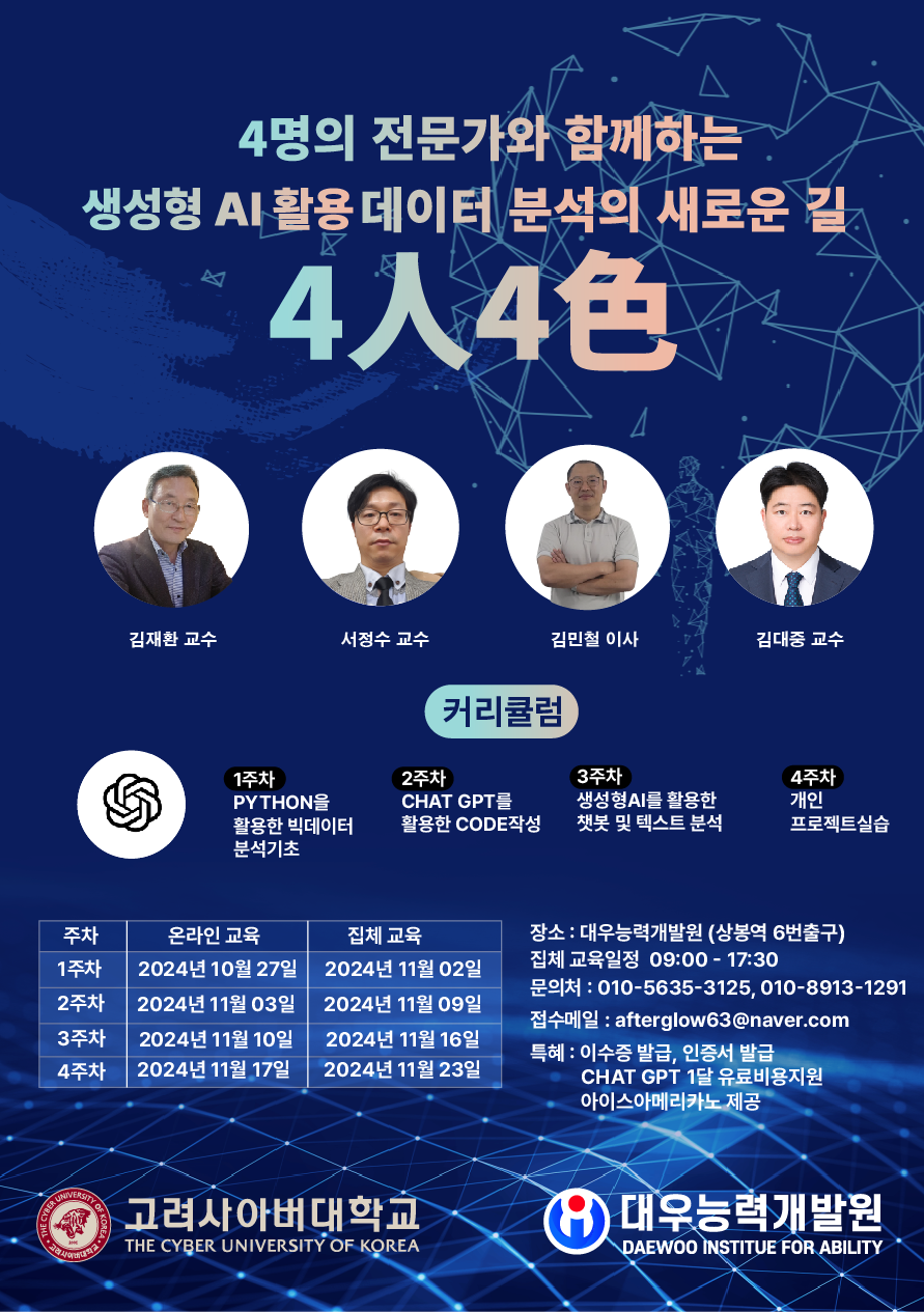 생성형 AI를 활용한 빅데이터 분석 실무자 양성 과정 글의 상세내용