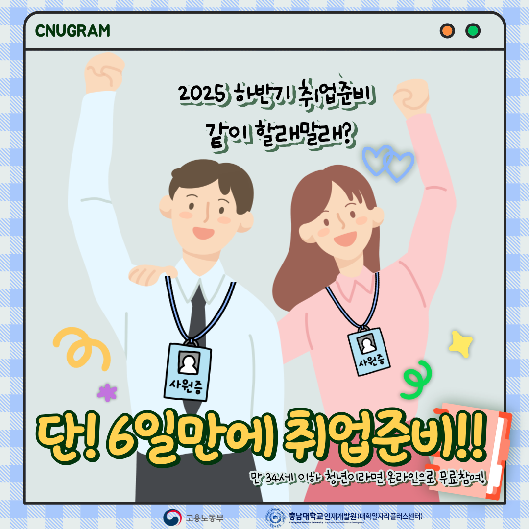 | 제목 | (비대면) 「6일 완성 취업특강」 | ||||