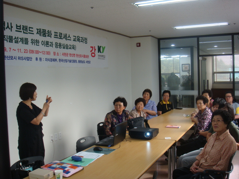 한산모시RIS 사업단 전문인력양성교육 실시 - 일자/장소 : 9. 7(수) ~ 8(목) / 한산모시회관 - 내용 : 직물설계 및 제직, 디자인 제품화 과정